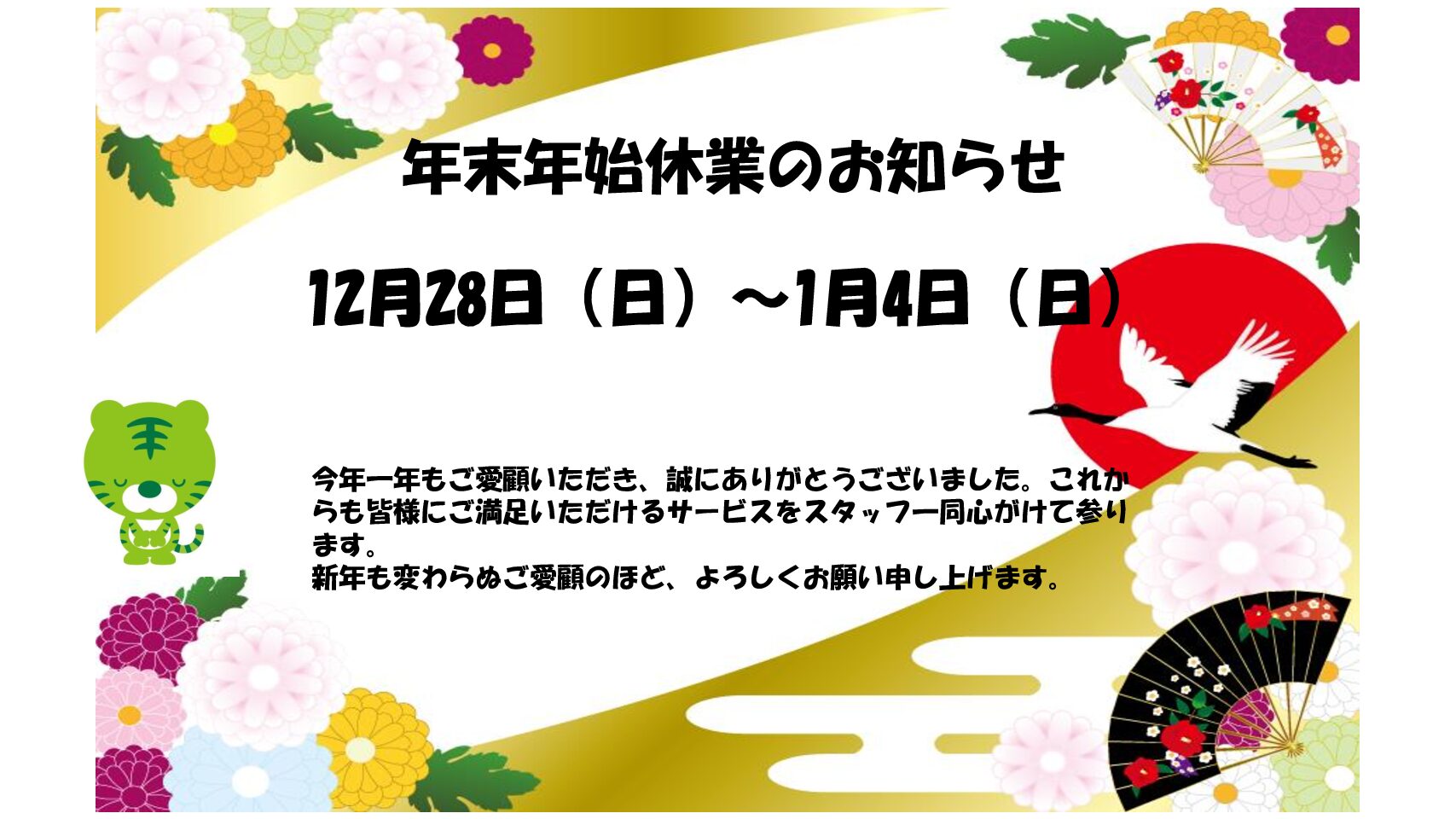 今年一年もご愛顧いただき、誠にありがとうございました。これからも皆様にご満足いただけるサービスをスタッフ一同心がけて参ります。 新年も変わらぬご愛顧のほど、よろしくお願い申し上げます。