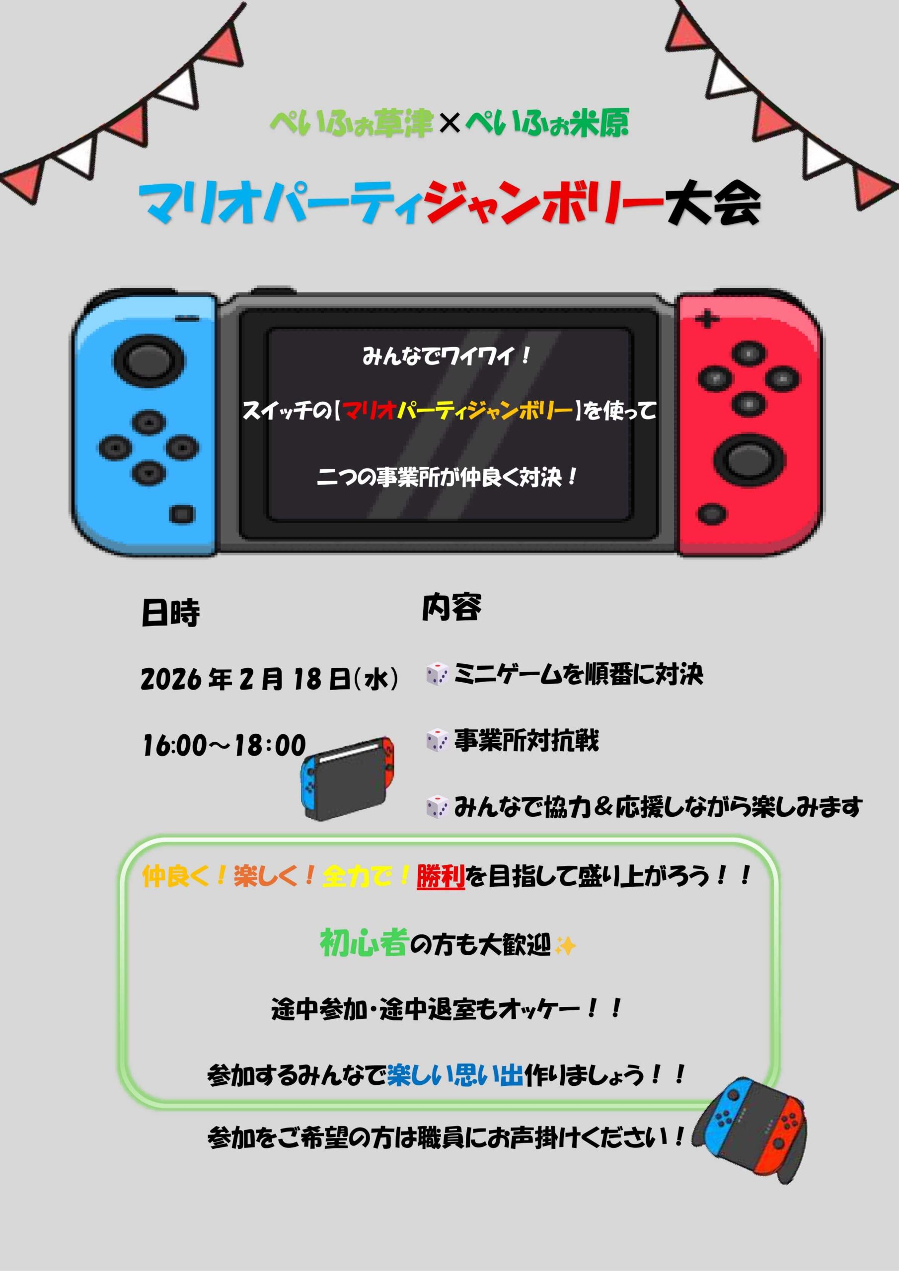 ぺいふぉ草津×ぺいふぉ米原から事業所対抗ゲーム大会のお知らせです!