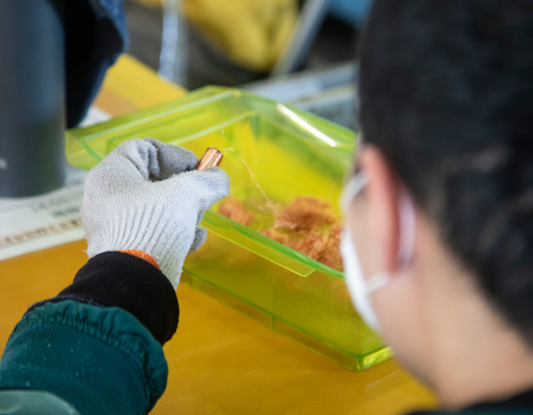 人の手による分解・選別で高い再資源化率を実現。リサイクル・リユースを通じて、環境保全と資源の有効活用と障がい者の就労機会の創出を両立しています。